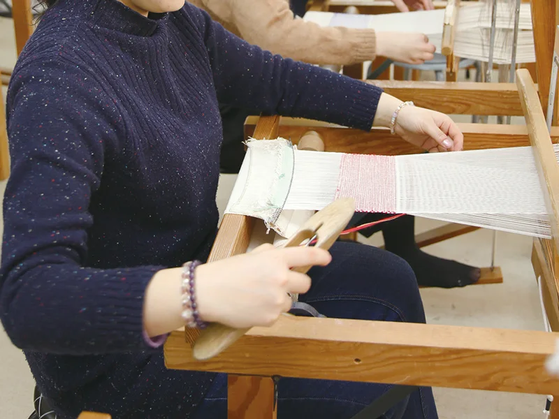 西陣織代表京都傳統工藝,且具有悠久歷史。在西陣織會館,常設關於西陣織的介紹與史料展示,此外,也有職人現場示範傳統技藝、以及短時間的手織體驗,使用迷你織機,親手編織出約20cm × 15cm大小的桌巾。完成後的作品可以帶回作為旅途的珍貴紀念。