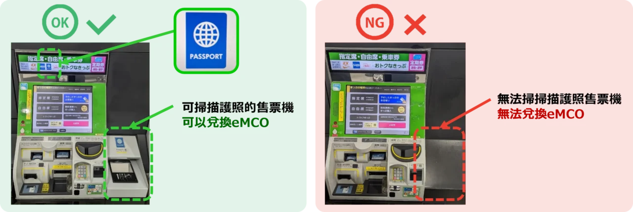 ※若售票機故障或持有之護照沒加IC晶片請至指定車站綠色窗口兌換實體車票。