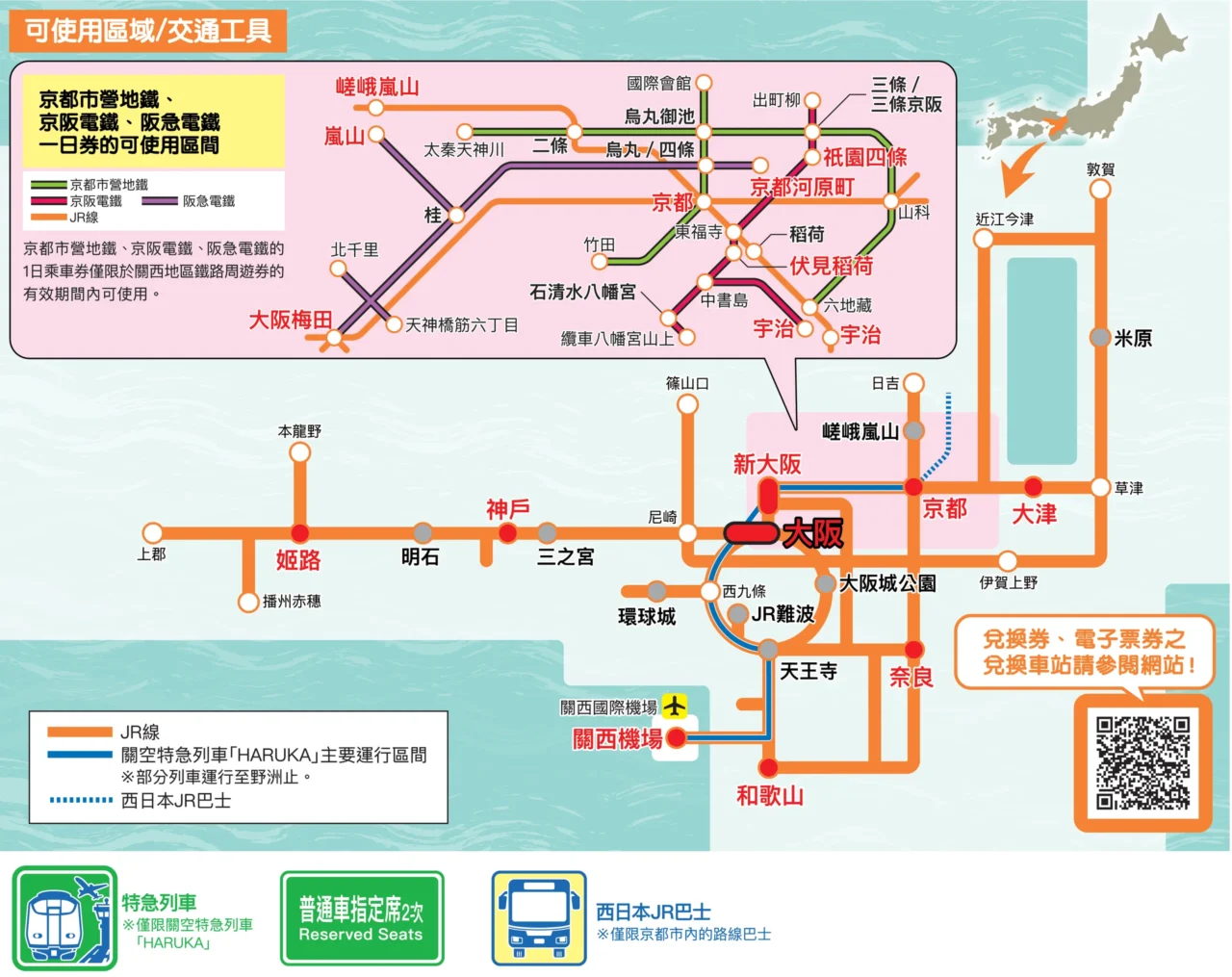 (兌換方法及注意事項請點選網址查看https://www.westjr.co.jp/global/tc/ticket/pass/kansai/kyoto_guide.html)