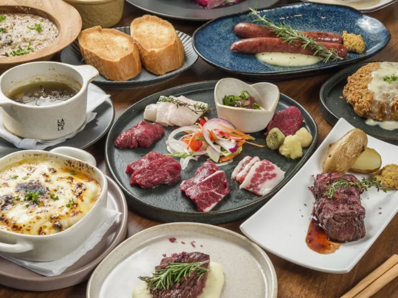 本店是一家結合馬肉與休閒法式料理的輕鬆居酒屋,採用來自熊本契約牧場的高品質馬肉。提供馬肉刺身、牛排、焗烤、義大利麵等多樣料理,還能品嚐稀有部位的特級生肝與霜降馬肉刺身。前菜包括大根燉煮佐波爾奇尼醬汁、松露馬鈴薯沙拉,手工馬肉炸肉餅也深受歡迎。酒類豐富,涵蓋葡萄酒與高球,並提供套餐及飲料無限暢飲服務。