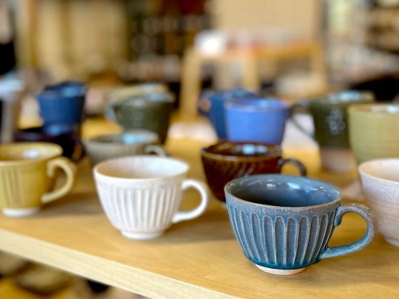 在萩燒的專門店中,從正式茶道具到日常生活用器,一應俱全,皆展現出萩燒獨有的溫潤質感與風味。除了傳統的器皿外,這裡也展示了結合現代設計的創新作品,甚至還有與有田燒知名窯元合作、呈現細緻繪付的獨特款式。各種風格的萩燒作品皆可親手拿起細細品味,感受其陶藝魅力。
