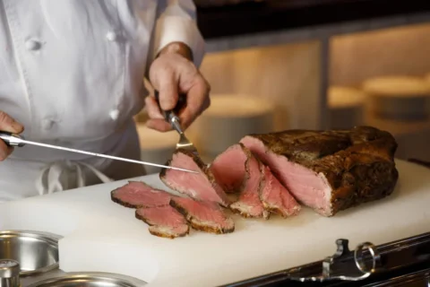 這間大型自助餐廳設有開放式廚房區,讓賓客邊用餐邊欣賞廚師現場料理的精彩過程。提供日式、西式、中式等多樣料理及精緻甜點,滿足不同口味需求。餐廳採現代簡約風格,空間明亮舒適,是家庭聚餐、朋友聚會及觀光用餐的理想選擇。