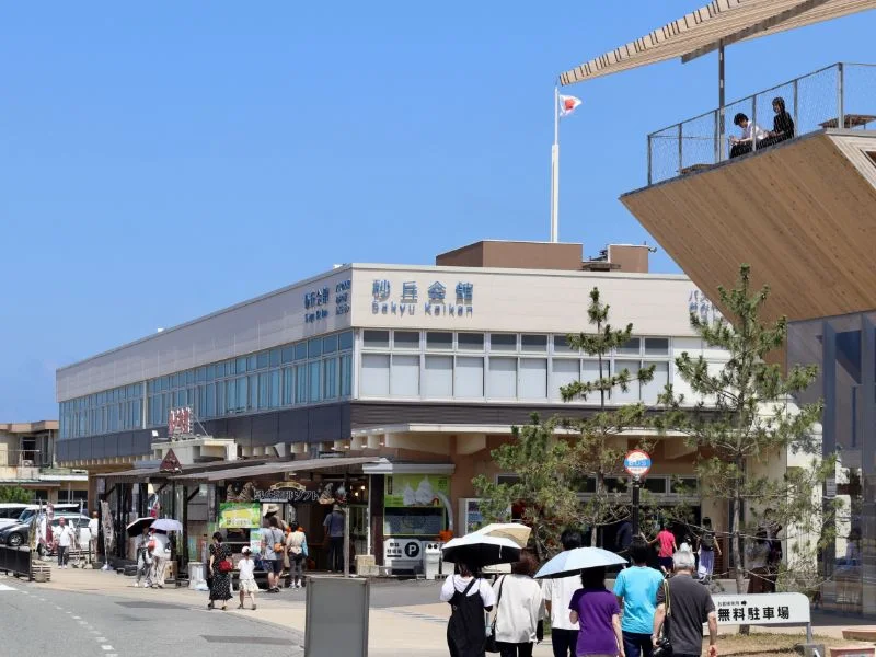 砂丘會館位於鳥取砂丘中央入口處,是前往砂丘觀光的絕佳起點。館內除了販售鳥取名產與特產的商店外,還有無需預約即可使用的餐廳,以及提供梨子霜淇淋等甜點外帶的點心區。此外,館區內設有由世界知名建築師「隈研吾」設計的咖啡廳「Takahama Café」,吸引了世界各地遊客的關注。來鳥取砂丘觀光時,請務必造訪砂丘會館。