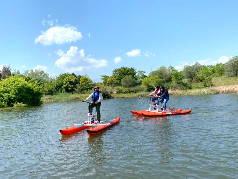 不妨來試試在城市水岸悠閒地騎著水上自行車散步的樂趣吧!