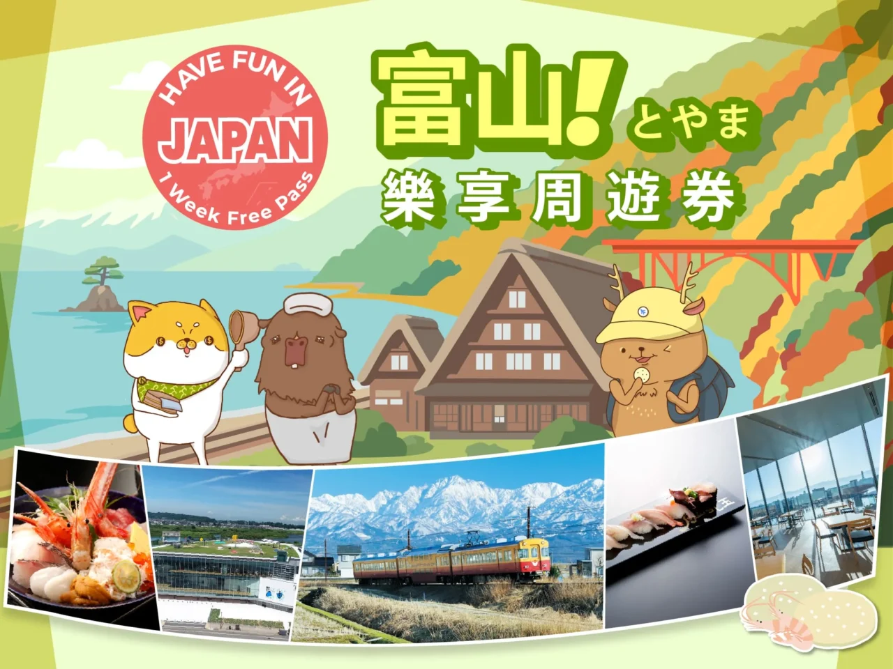 除了上面說的交通票券,如果你想要輕鬆暢遊富山,另外推薦你這張「富山樂享周遊券」。此票券包含富山當地的人氣景點、購物、交通等,一張票滿足你的富山之旅,讓你玩得更省更輕鬆。
