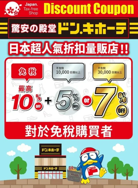 唐吉訶德(Donki) 全日本分店,結帳享10%免稅+最高7%折扣優惠。
