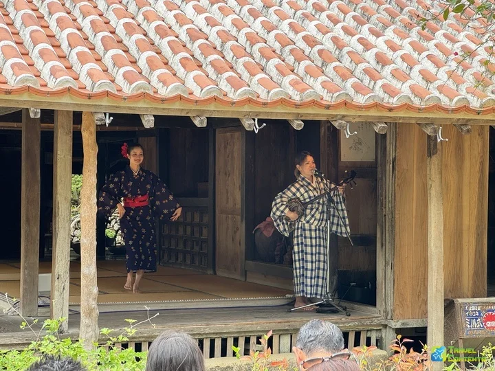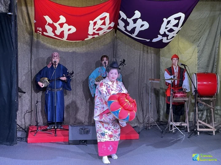 聆聽樂手彈奏著三味線,嘴裡哼唱著傳統歌曲,欣賞舞者隨著音樂起舞的曼妙舞姿。