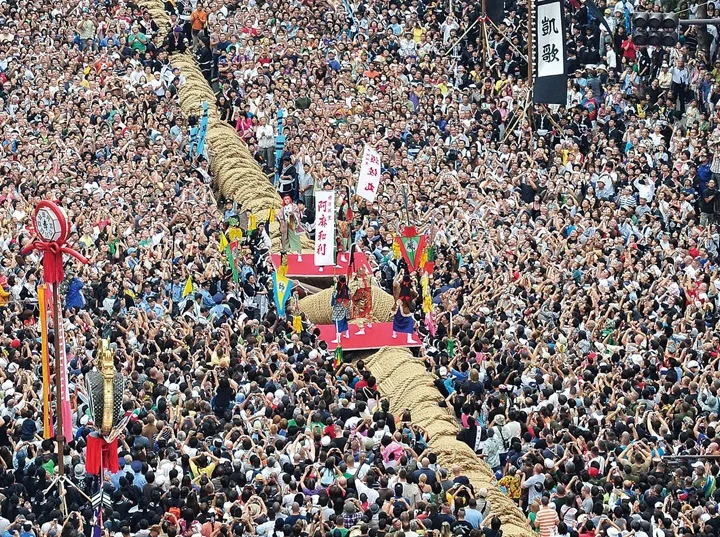 這裡展示著那霸大拔河祭使用的大型拔河繩。