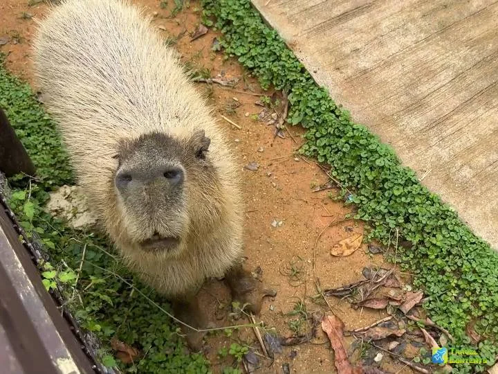在樂園內的水豚廣場,可以餵食水豚,水豚呆萌的樣子非常療癒。