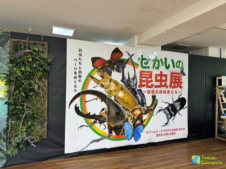 園內不定期會舉辦不同主題的活動,這次是「世界的昆蟲產」,裡面展示約20隻的獨角仙、鍬形蟲與300種昆蟲標本。