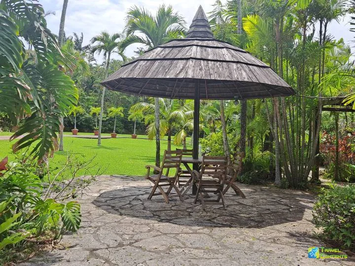 離開椰樹街,也可以到充滿南國風情的涼亭休息,欣賞其他的熱帶植物。