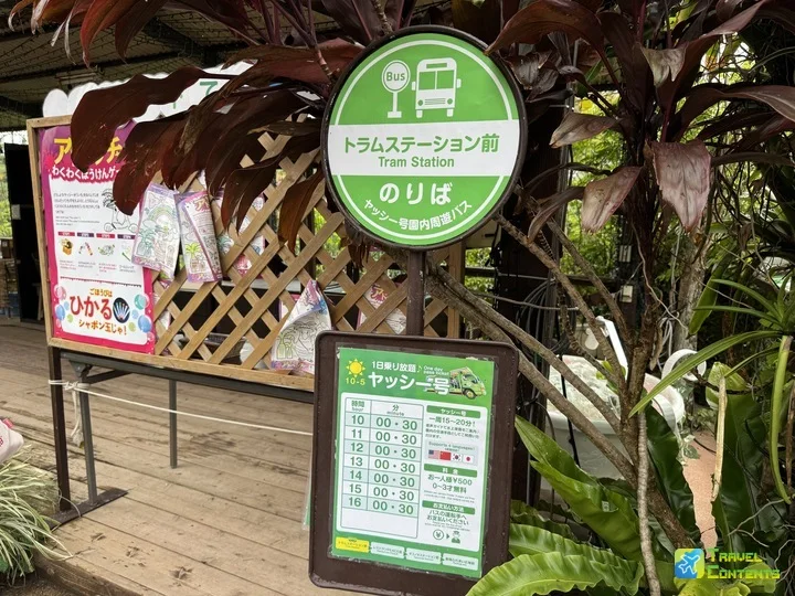 巴士每個整點與30分時會發車,車上會播放園內的導覽說明,支援英文、中文、韓文、日文4種語言。