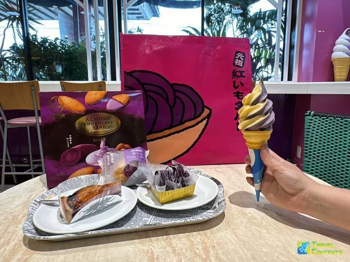 使用在地特產紫薯作為基底,搭配燒製的塔皮形成絕妙的組合,根據不同季節也會推出期間限定口味的商品。除了最知名的紫薯塔外,還開發出紫薯餅乾、紫薯蛋糕、紫薯霜淇淋,紫薯饅頭等商品。