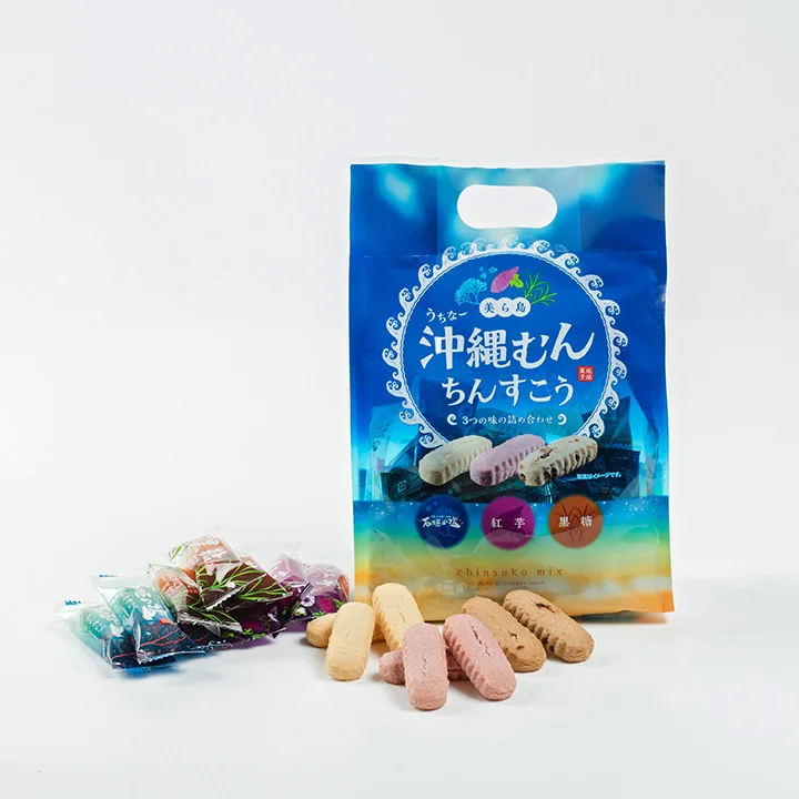 為琉球王國時期流傳下來的傳統糕點。將豬油與雞蛋、麵粉、砂糖混合後燒製而成,酥鬆清甜的口感非常涮嘴。這次購買的金楚糕有石垣鹽、紫薯、黑糖三種口味,一包就可以品嚐到三種沖繩特產,有夠划算。