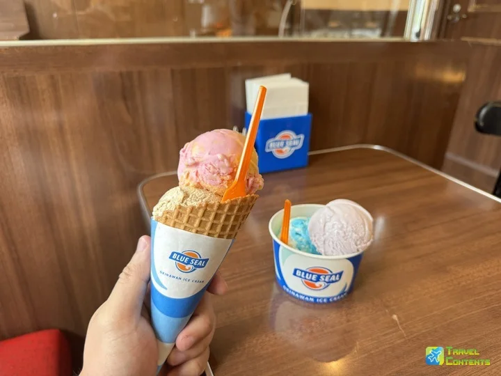 發源自美軍基地,也是沖繩當地最知名的Blue Seal 冰淇淋,外觀超繽紛,多種熱帶水果口味任你挑。每個月8號還有特殊活動,直接幫你升級冰淇淋,1球變2球,簡直太佛心。