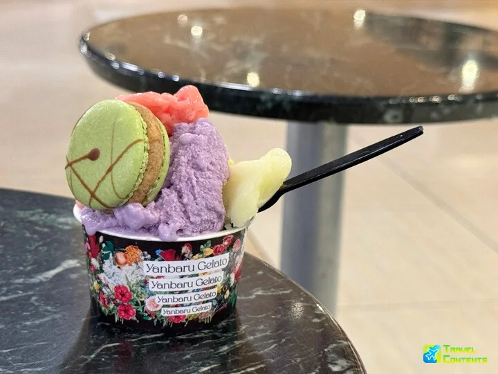 經由兩位世界級職人打造出的美味義式冰淇淋,店內販售的品項全部採用沖繩當地食材,為顧客提供最好的口味。炎熱的天氣下,品嚐口感綿密的冰淇淋,再搭配一顆馬卡龍,好享受。