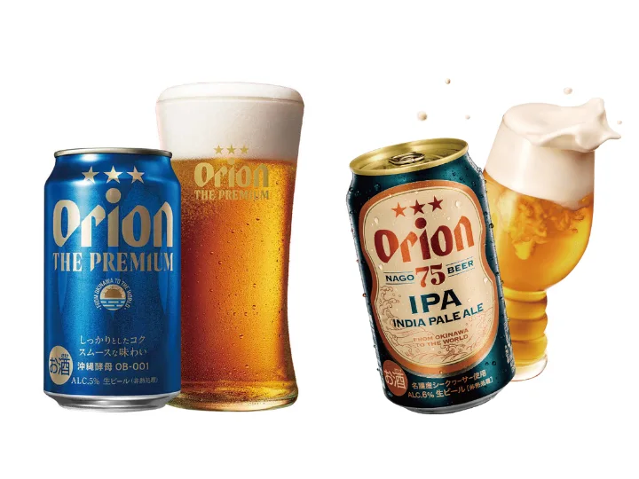 Asahi Orion The Premium(左)、Asahi Orion NAGO 75 BEER IPA(右)