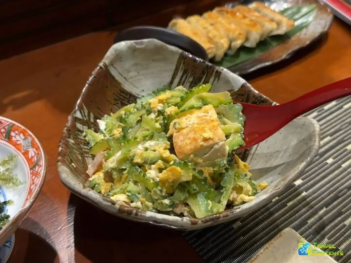 沖繩當地代表性的庶民料理,是將苦瓜搭配豬肉、蛋、豆腐一起拌炒。苦瓜的苦味可以促進食慾,其豐富的維他命C,在炎熱的夏天有助於防止中暑。