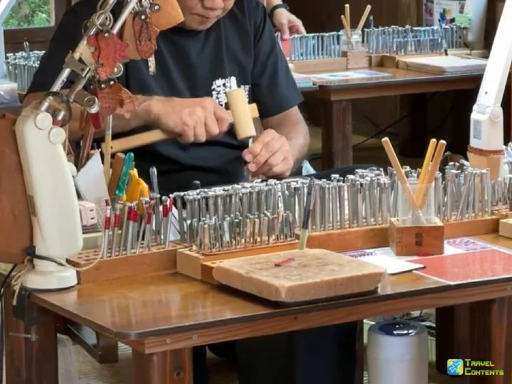 一旁可以免費體驗試敲,但製作鑰匙圈需要另外付費。