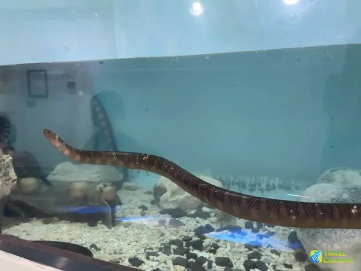館內展示著多樣的蛇類與爬蟲類,在這裡,可以看到蛇在水中游泳的模樣。