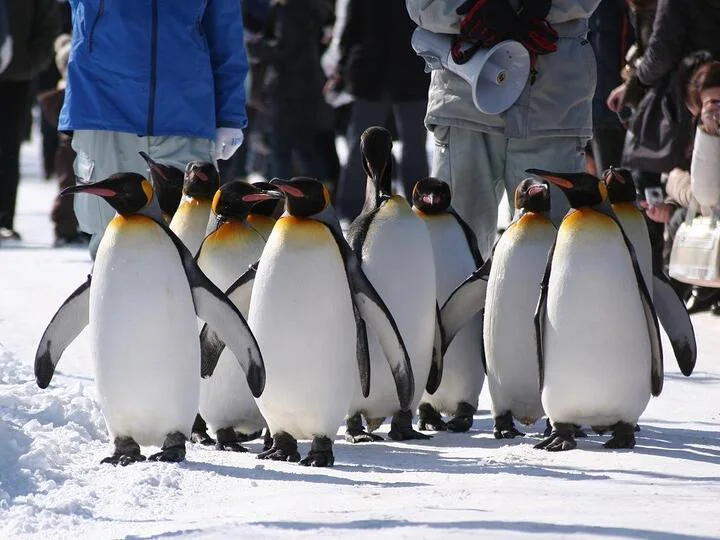 說到旭山動物園,就不得不提到「企鵝散步」!每年冬季積雪時,館方為了讓企鵝多多運動,就會讓牠們成群結隊在園區內悠閒漫步,企鵝搖搖晃晃的步伐,真的非常可愛~~~