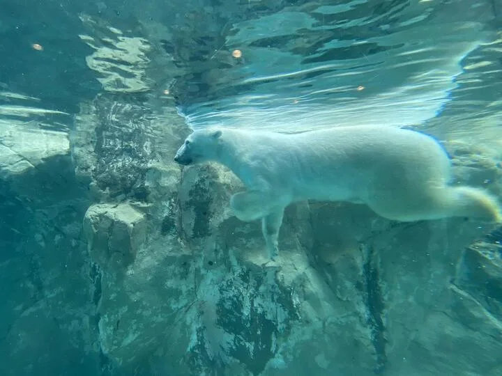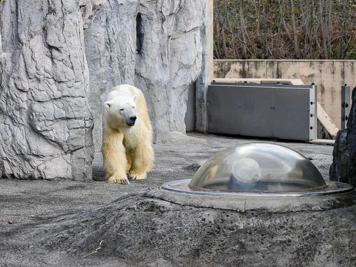 北極熊館分為兩個展示區,遊客可以透過觀景窗觀察北極熊跳水、游泳與捕食的震撼瞬間。最特別的是設有模擬「海豹視角」的半圓展示窗,能體驗北極熊從身旁掠過的壓倒性魄力。