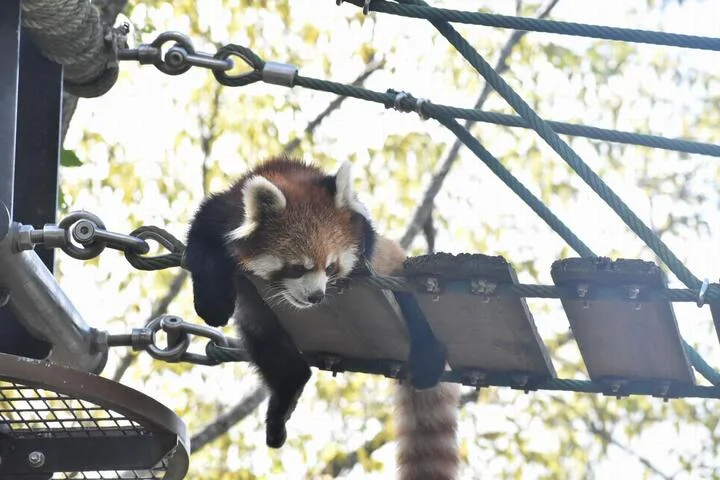 小熊貓館設有高架木橋與棲架,讓小熊貓能自在攀爬、悠閒走動。小巧可愛的身影加上靈活的動作,讓人忍不住多看幾眼。