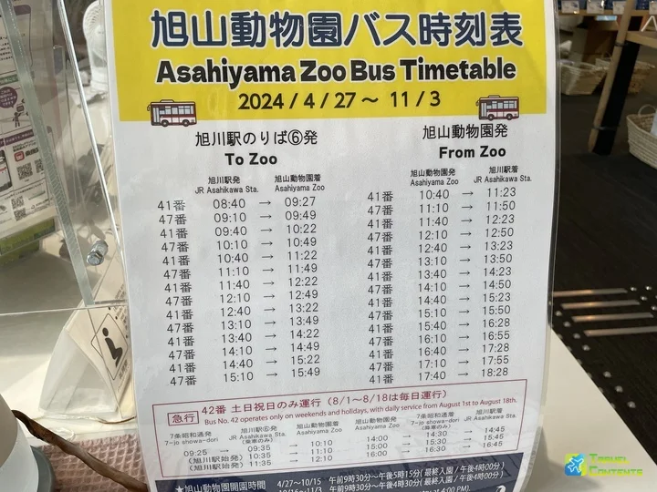 兌換好票券後,直接前往旭川車站前的巴士站,並搭乘41或47號巴士,約40分鐘即可直達旭川動物園。