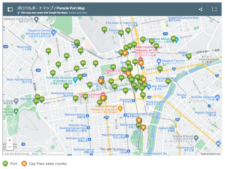 Porocle e-bike在札幌市區,有約60個還車站點,只要到官網查詢地圖,就可以快速查詢到離你最近的還車點。