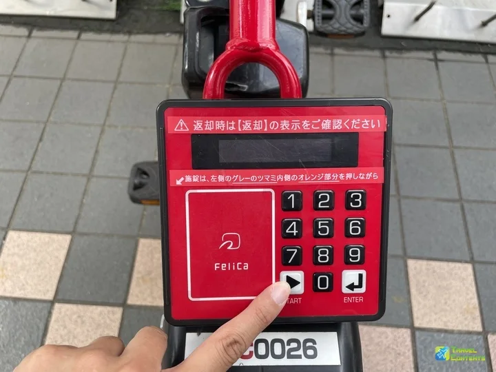 解鎖電動自行車的方式和 YouBike 很像,先按壓後輪鎖上的 start 鈕,再使用卡片進行感應,解鎖後就可以出發了!