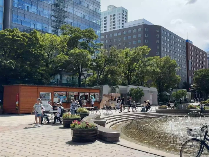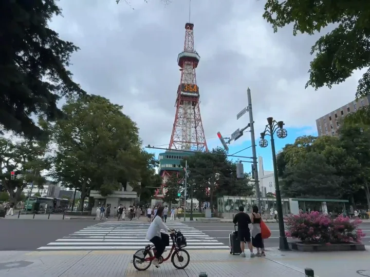 前往位於電視塔前方的大通公園,這裡是札幌市中心的都市綠洲,長約 1.5 公里,你可以騎著電動自行車可以從不同的角度欣賞高聳的電視塔。
