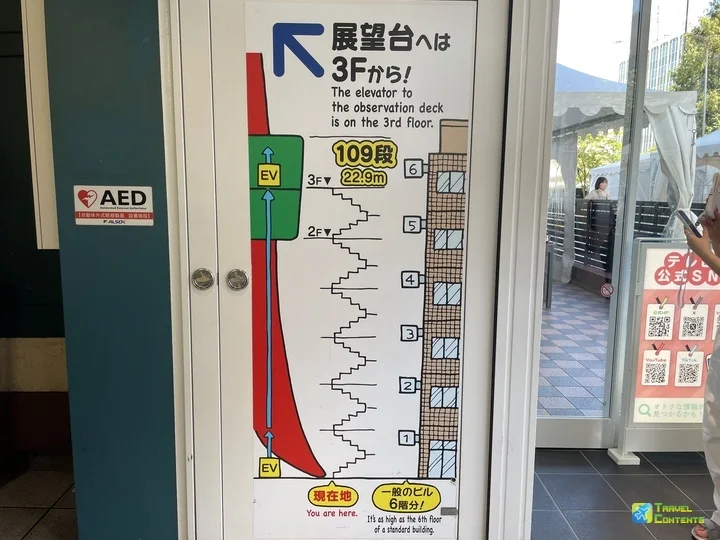 進入塔內,沿著指標前往 3 樓櫃台兌換入場券,再搭乘電梯前往離地約90公尺的展望台。