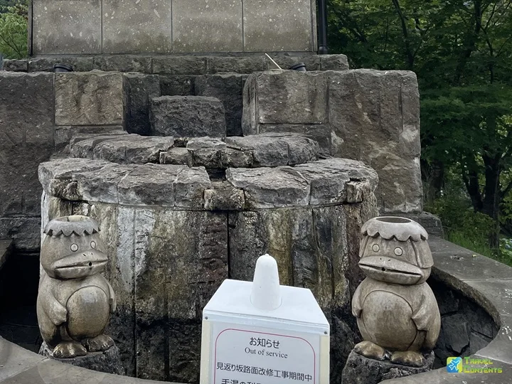 在這裡,有一個高達6公尺的河童家族祈願手湯,聽說會引入源泉水。
