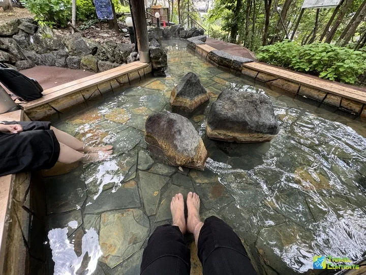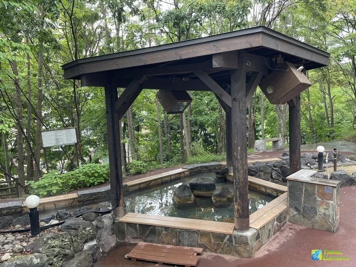 接著,我們來到了定山源泉公園,這裡有一個天然的免費戶外足湯。