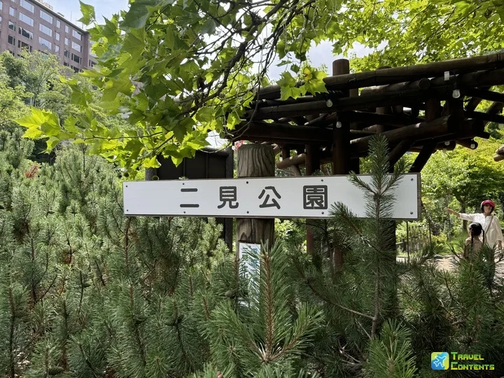 沿著定山溪散步路線,我們經過河童大王坐鎮的二見公園。