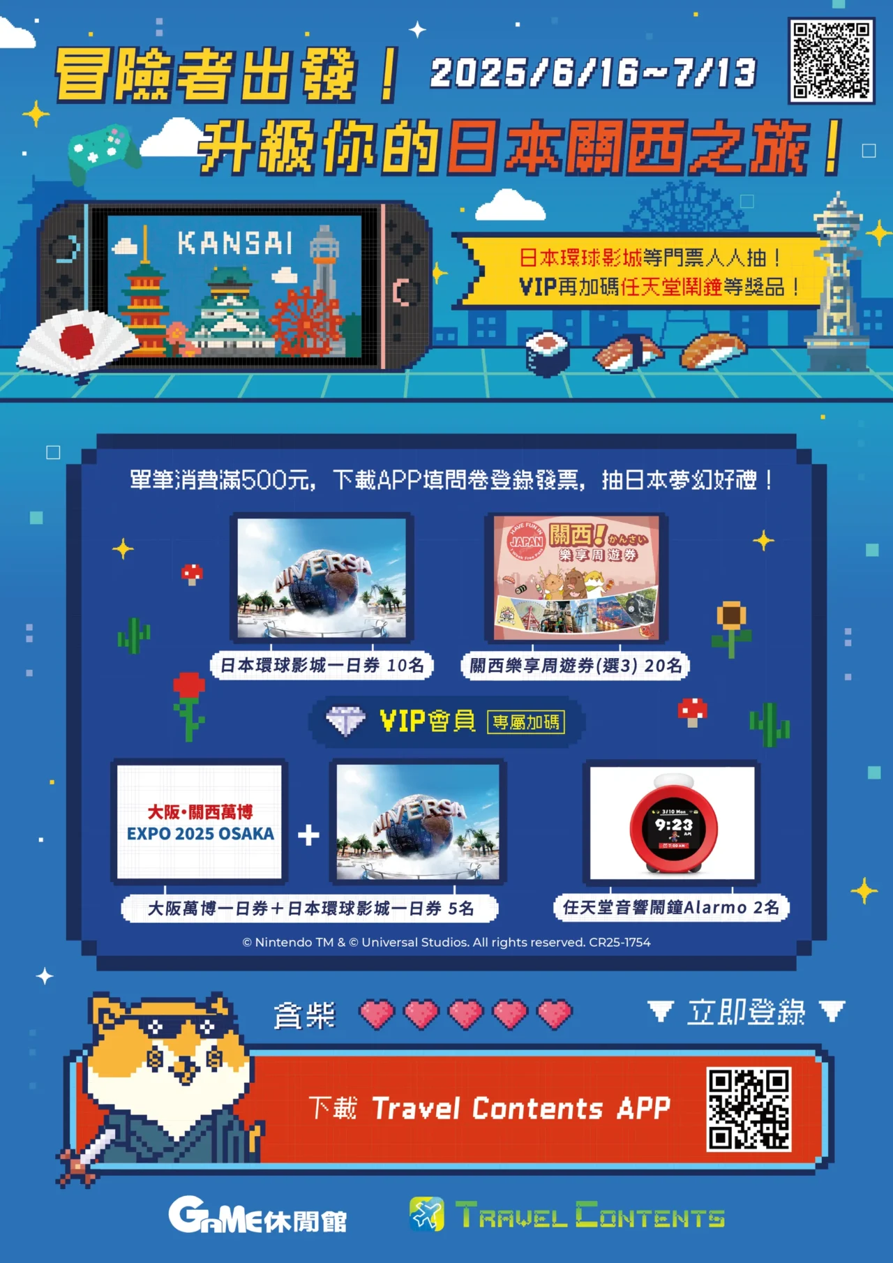 活動期間至GAME休閒館門市消費,滿額就抽日本環球影城門票、任天堂音響鬧鐘Alarmo等超值好禮!!!
