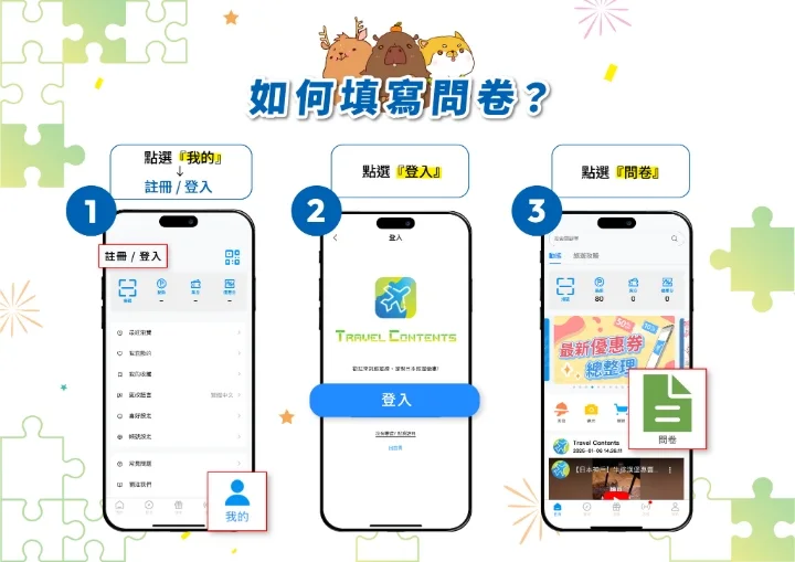 參加者須為TRAVEL CONTENTS APP有效會員,若會員帳號註銷、失效或停權等情況,將視為放棄參加資格。