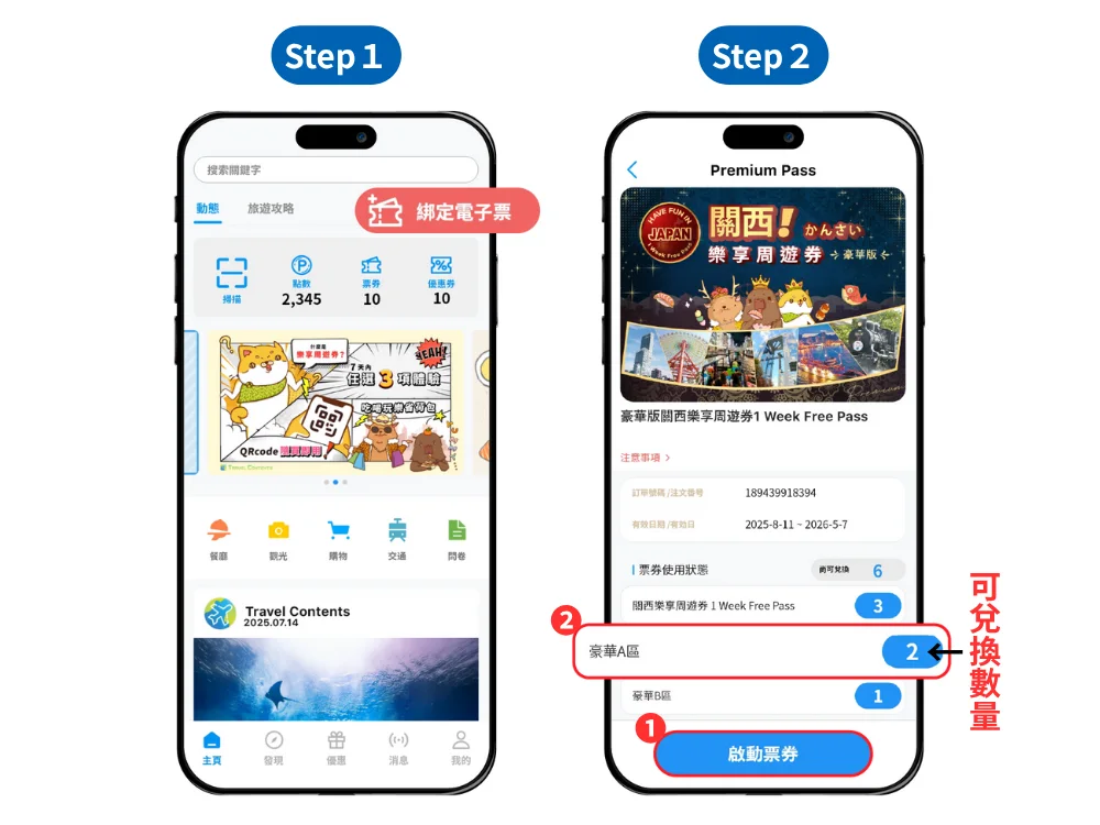 Step 1:先至各大購票平台購買票券,並下載Travel Contents App,進行綁定。