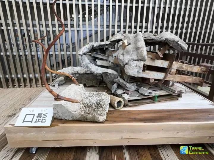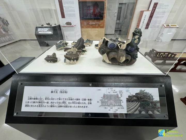 還有災後的殘骸展示區、展示著歷經災害後魄力猶存的正殿的守護神「龍頭裝飾」、殘存的瓦片裝飾,獅子瓦等。