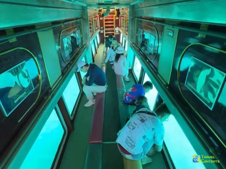 觀光船的部分船艙會潛入水中,可以透過大型玻璃窗,盡情欣賞沖繩獨有的熱帶魚群!