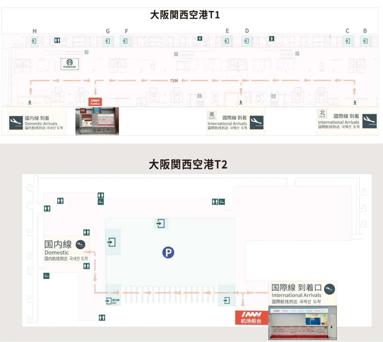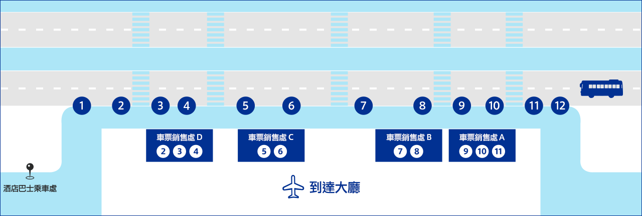 兩個航廈都設有乘車處,不論是要現場購買或是使用【關西樂享周遊券】兌換,都需要先前往服務台報到!報到完成後,將有專人引導前往乘車處,完全不須擔心會迷路走錯,非常貼心的服務~附上服務台所在位置: