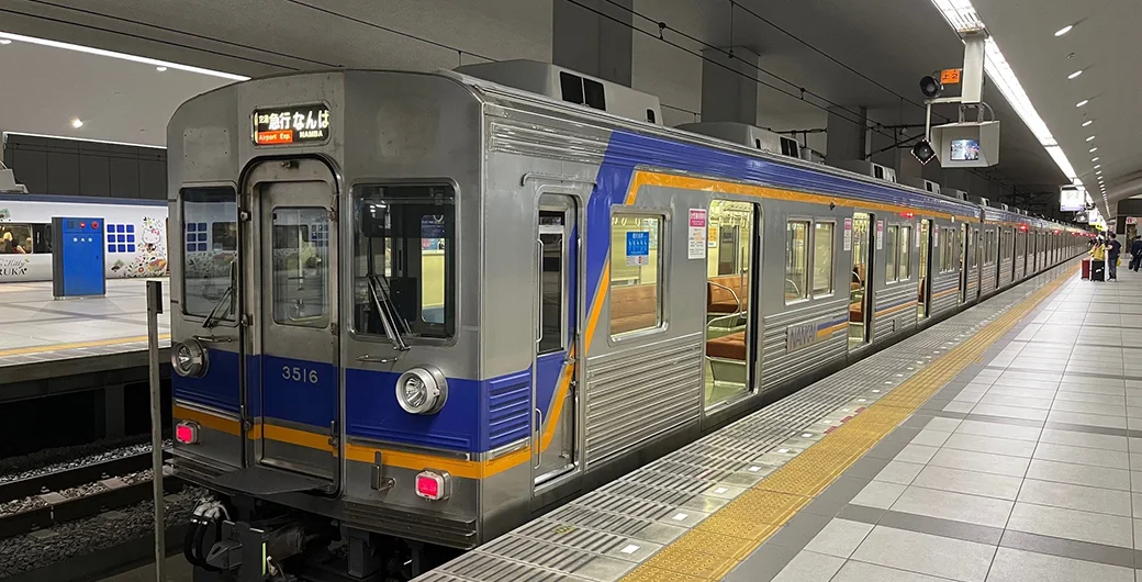 比起特急,急行的停靠站較多,但車資較便宜,不需另加購特急券,車程約44至47分鐘抵達「難波」站。同樣是自由座的關係,遇到人潮較多時可能會沒座位!