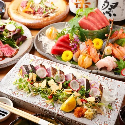 由擁有高級日式餐廳經驗的廚師精心製作的名物藁燒(日本傳統燒烤方式),以大火點燃稻草,將煙霧燻製魚的表皮,並提供講究的鮪魚料理、來自熊本的生馬肉,以及選用當季食材製作的美味料理,讓您能以合理的價格品嚐到這些美食。