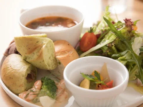 景點介紹|富山縣美術館「Swallow Cafe」  此套餐包含: ・四款鬆軟綿密貝果拼盤(採用越光米製作) …