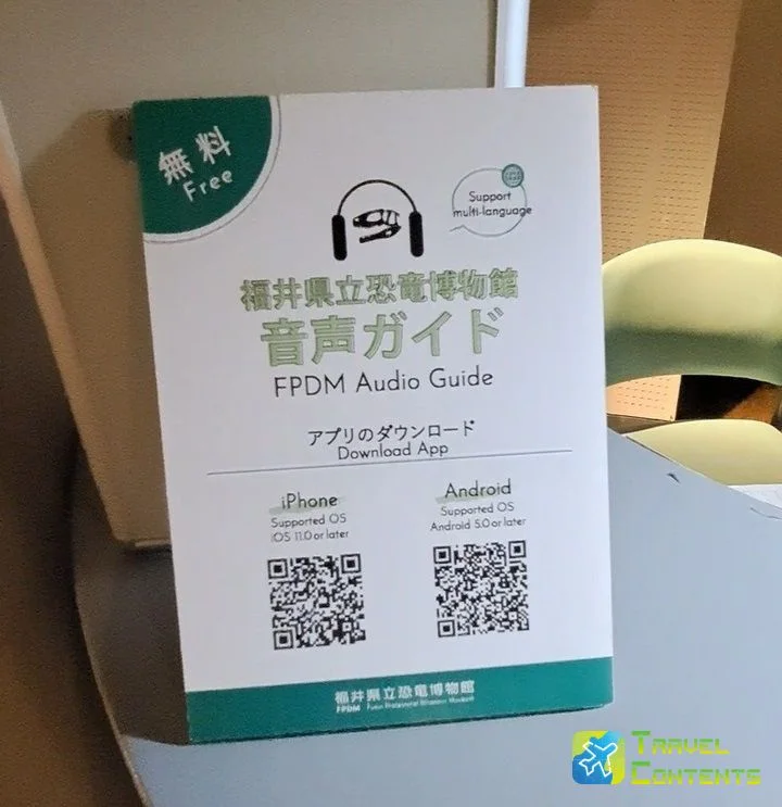 透過館內的免費WIFI並掃描櫃台上的QRcode,下載「福井縣立恐龍博物館APP」,Android與ios都有支援。