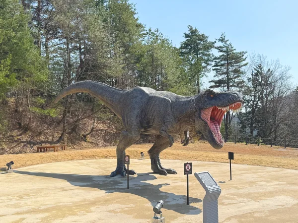 穿過恐龍之路,耳邊就傳來震耳欲聾的吼叫聲,隨即就看到高約7.2公尺的霸王龍擺動身體迎接你,栩栩如生的暴龍就在你眼前。