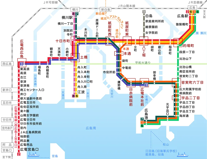 廣島電鐵 + 高速船|路線分布廣