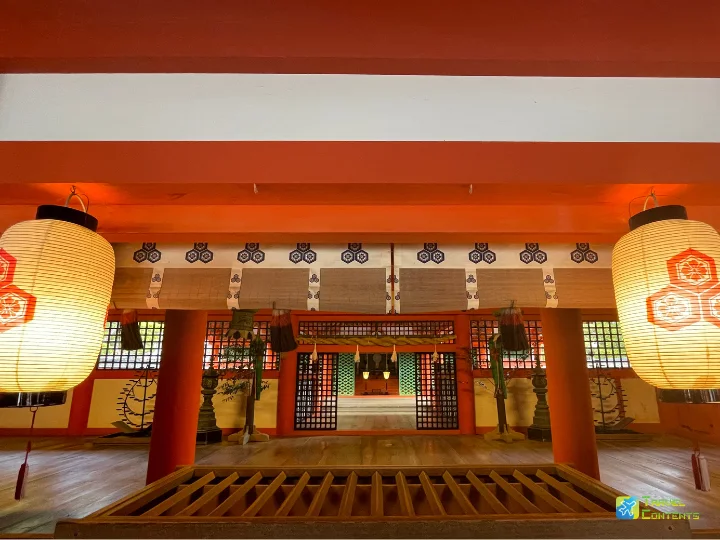 由主殿、幣殿、拜殿和祓殿組成的御本社,其中從本社的祓殿向外望去,壯觀的大鳥居正對中央,遠觀之美令人讚嘆,與實際站在鳥居前仰望時又是截然不同的感動。彷彿穿梭於神社的各個空間,就像踏入了時光隧道,感受這座擁有千年歷史的神社散發出的神聖與靜謐之美。