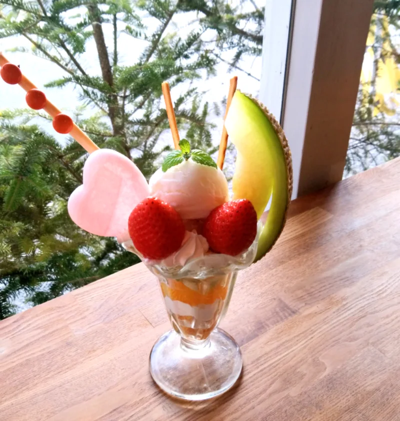 位於岡山後樂園附近的一座經過改造的古民居內夢幻聖代映入眼簾,風味絕佳的水果聖代!每一層都讓人躍躍欲試!