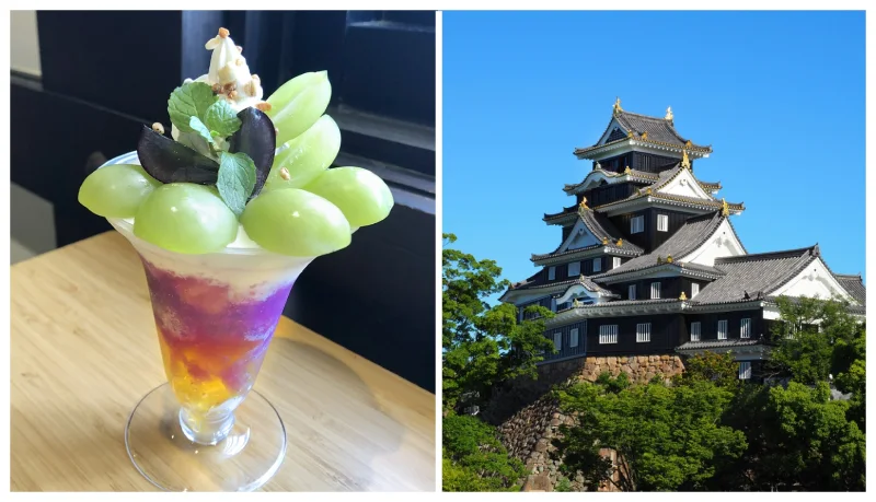 必訪景點「岡山城天守閣」。岡山城裡的景觀咖啡廳,逛累了還可以享用惬意下午茶,當季高級水果食材心製做的聖代!不來品嚐一下就太可惜了!